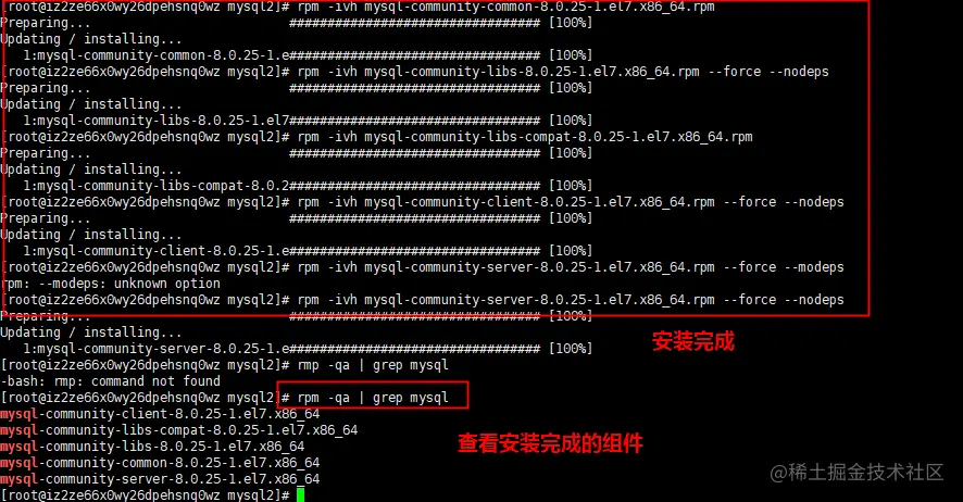 2、rpm -ivh mysql-community-libs-8.0.16-2.el7.x86_64.rpm --force --nodeps