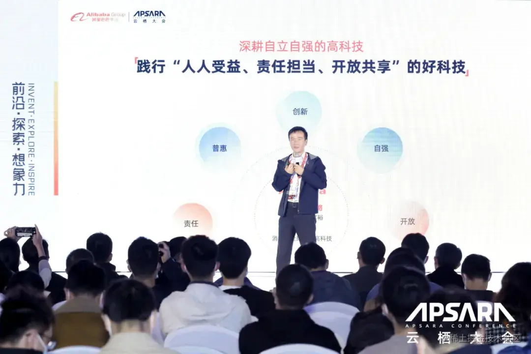 关于阿里巴巴的技术创新方向,以前我们内部常提“技术创造新商业”,技术如何带来商业文明的革新,是我们的创新方向。随着阿里巴巴的科技、业务、平台发展到现在的规模后,今年我们提出两个新的词:第一个是“高科技”,我们要深耕自立自强的高科技;还有一个是“好科技”,到底什么是好科技?有三个词是能够代表“好科技”的要求: