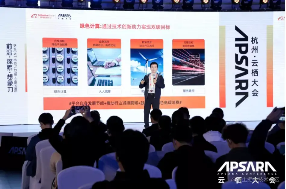 阿里巴巴之前提出了零碳云,云是整个未来数字基础的基建,如果云能够变得绿色、低碳,甚至未来云是零碳,基于云之上的数字商业就可以是零碳的,这是一个非常重要的解决点。如何能够让云变得更加低碳?我们所有的商业系统的计算是不是足够绿色?过去我们提出了效率目标,我们能够用多少计算资源解决多大业务量的问题,现在我们更加直接地提出低碳的目标,对单位的交易笔数,对交易的GMV碳排放是多少提出了目标。今年我们的目标是对单位的GMV碳排放下降15%,我们在内部专门发起了一个项目来做这件事情。