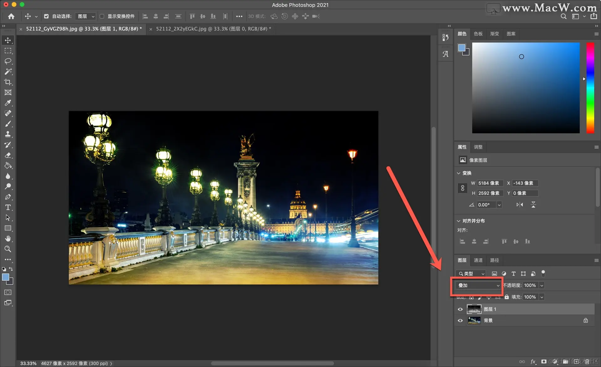 选择烟雾图层。然后将鼠标悬停在「图层」面板中的混合模式上。