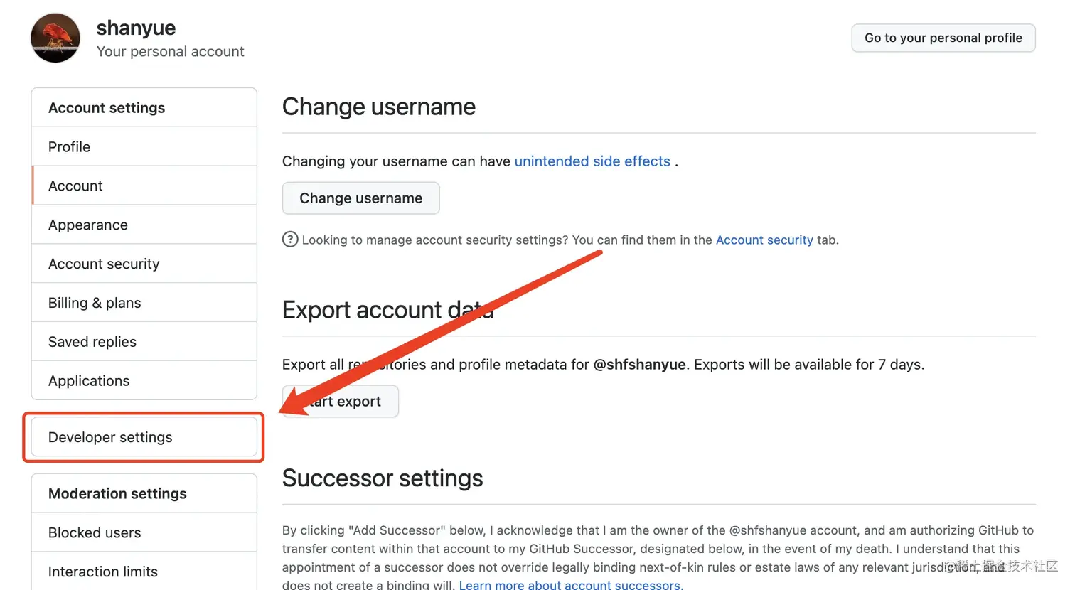 - 进入 Personal access tokens 页面