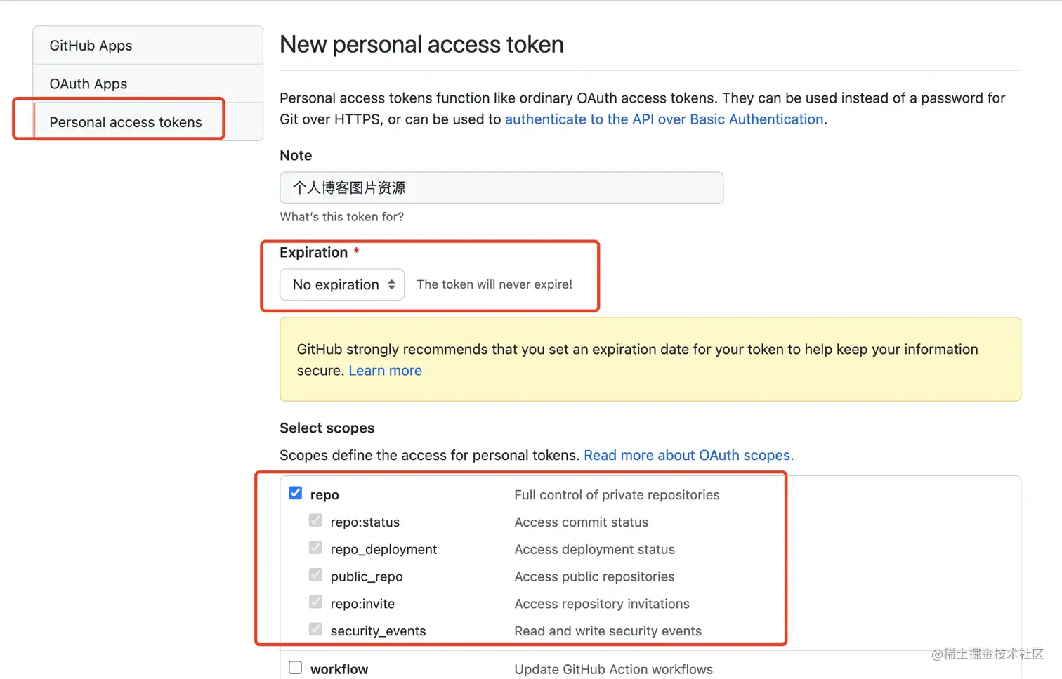 当然,其中最重要的设置是需要获取到 Github 的 access token