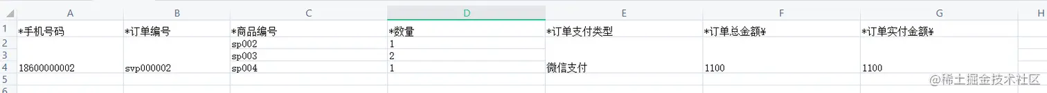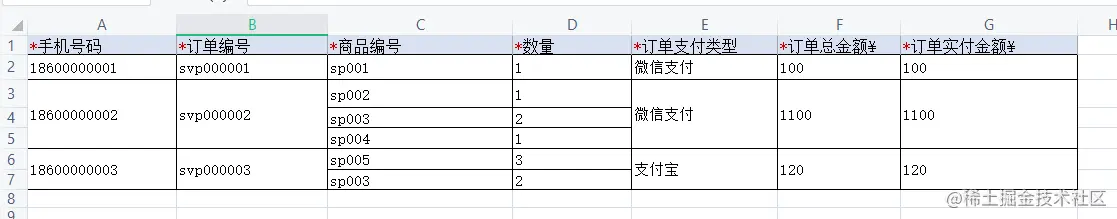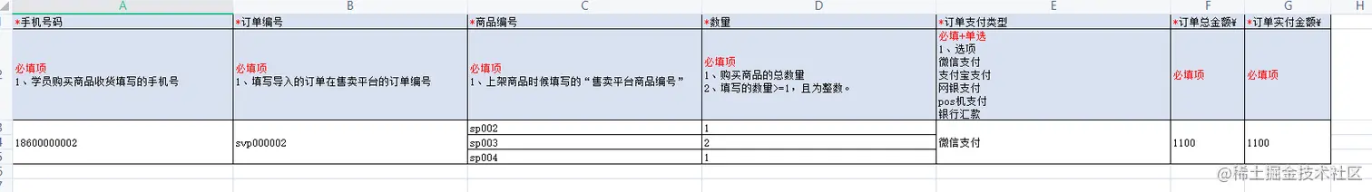 用xlsx-style确实可以实现设置样式,但是像我们一开始导入的excel文件中的表头中(如下图),有一个单元格中存在两种不同颜色的文本的情况,这种情况下,笔者用xlsx-style也实现不了,所以这里不详诉xlsx-style的使用方法,我们试下第二种导出excel的方法