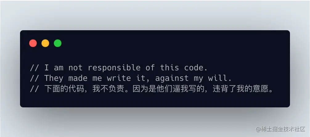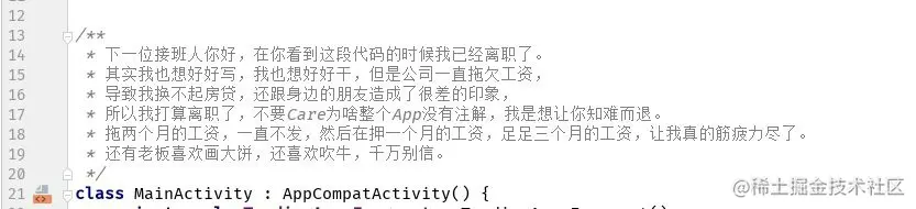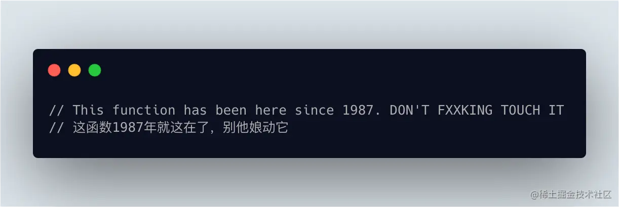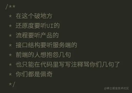 都说代码注释是程序员必备技能,但你这注释也太奇葩了吧! 阿轩学Java 2021-11-04 213 阅读1分钟 程序员个个身手不凡,经常会见到一些神级般的操作,比如评论区爆笑、社区神评、前无古人的回复需求等等,再比如今天分享的关于代码注释,真的是大开眼界。 这是一个被代码耽误的诗人 来一份1987年的代码看看 产品经理要对此负责 不敢看,也不敢问 Nike 官网 robots.txt 上的注释 程序员正确发牢骚的地方 阅读源码的人,心里一定的崩溃的 第一天上班看到这段注释就想辞职。 我能说什么 这个功能可以收客户多少钱? 看到这些,是不是有种莫名的佩服感! 关注我,看程序员更多趣事