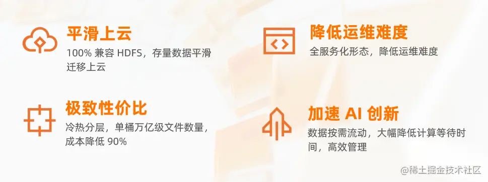- 极致性价比--冷热分层,单桶万亿级文件数量,成本降低 90%