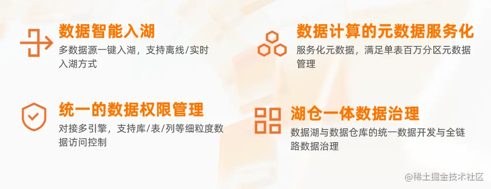 - 管理:面向湖存储+计算的一站式湖构建和管理,做到智能“建湖”和“治湖”