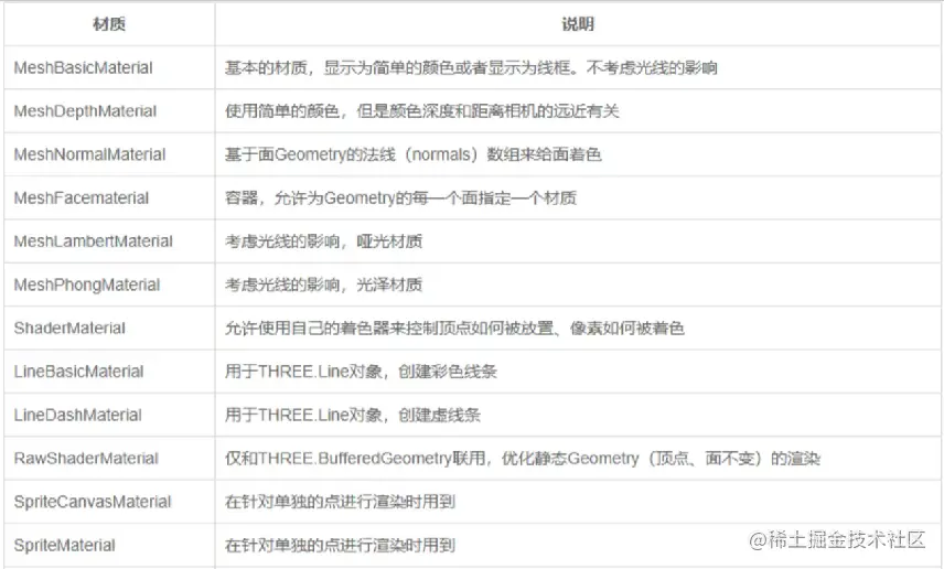 ThreeJs提供的材质: