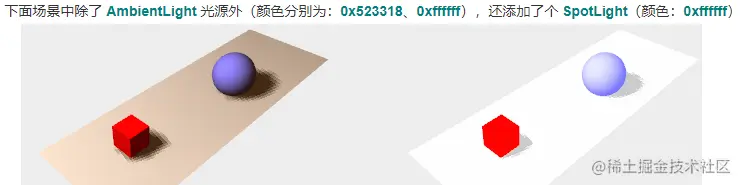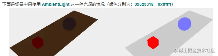 1、AmbientLight 环境光, 氛围光: 通常仅作为 基础光线, 一般需要与其他灯光配合使用,不能产生阴影,也无需指定坐标位置, 仅需设置颜色和强度