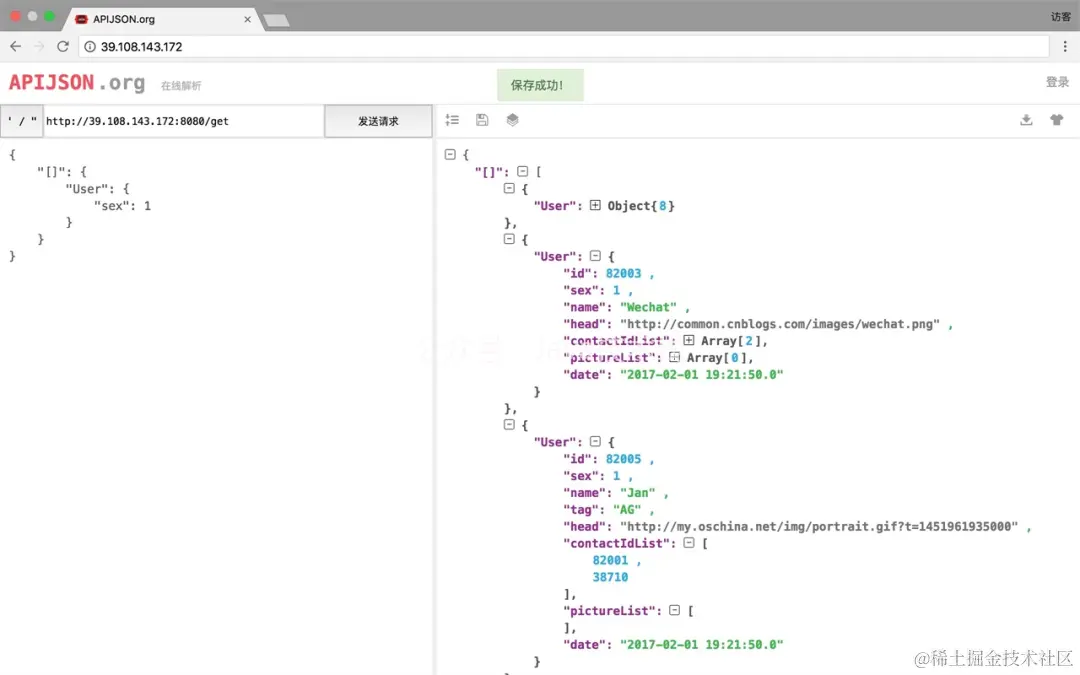 我们用 APIJSON 来操作一张表,例如用户表 User,代码写 3 行就够了: