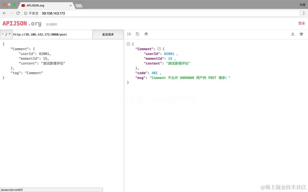 登录后角色自动变为 LOGIN(可传@role 来自定义),符合 Comment 的 POST 权限配置,成功: