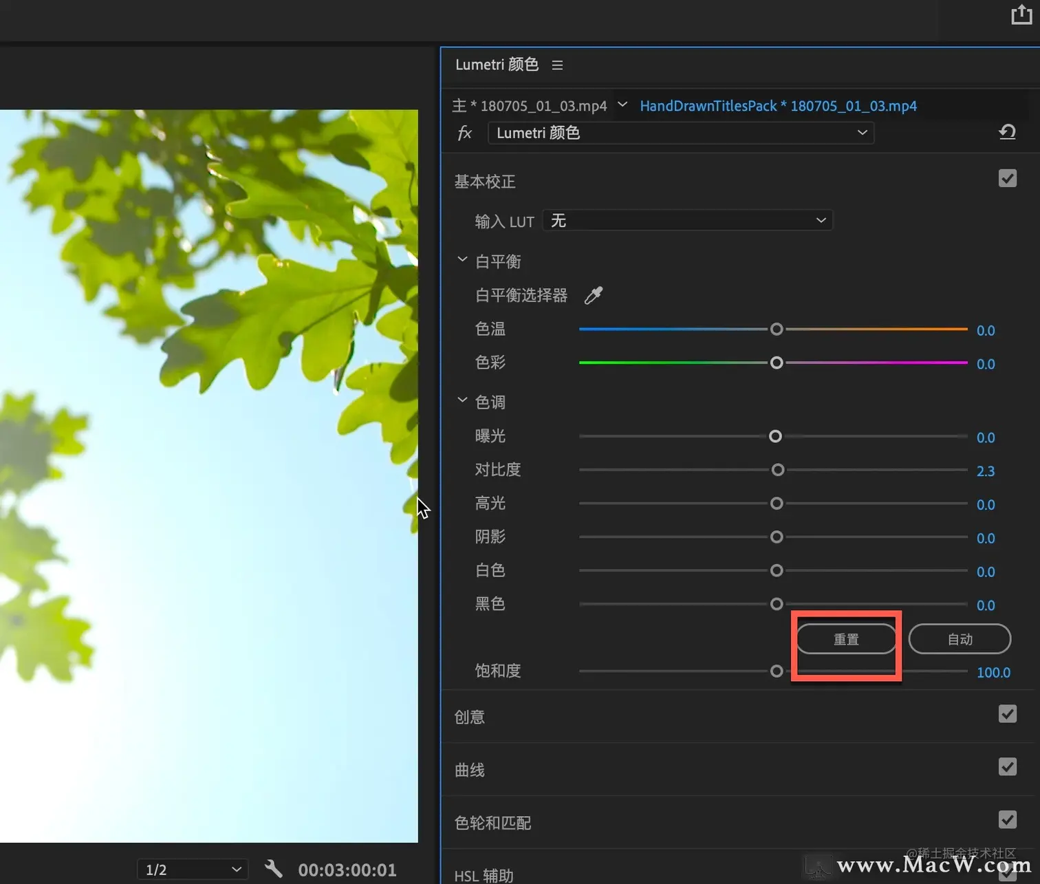 如果对调节好的效果不太满意,点击重置会恢复到默认状态
