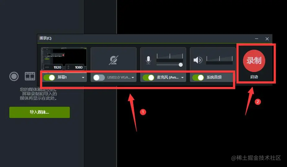 打开Camtasia软件之后,点击左上方的“录屏”按钮可以看见弹窗,接下来这个步骤很关键!建议新手把捕获弹窗的四个按钮全部打开,再设置画面清晰度,最后点击右侧的“录制”按钮,就可以正式进行网课录屏了。