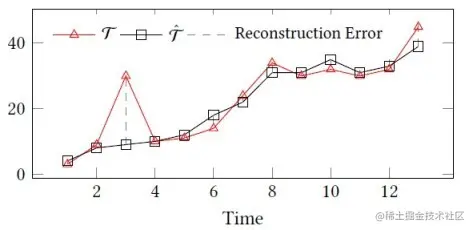 如下图中时刻 3 的观测值的重建差异很大,它就很有可能是一个离群点。