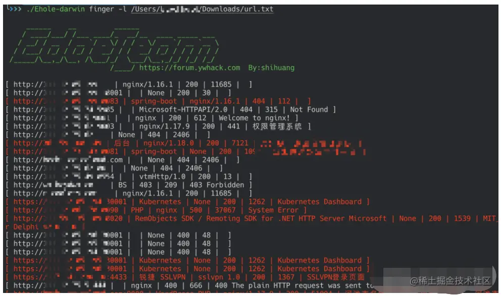 ./Ehole-darwin finger -l /Users/r1ng/Downloads/url.txt