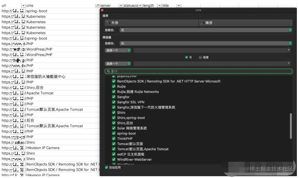 随后可直接将 host 列 copy 至 txt 文本中进行识别重要的系统(最终获取HTTP服务将3万条,识别10分钟左右):