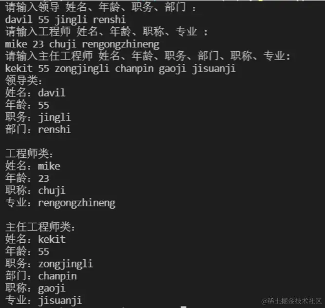 cout << "请输入工程师 姓名、年龄、职称、专业 :" ;
