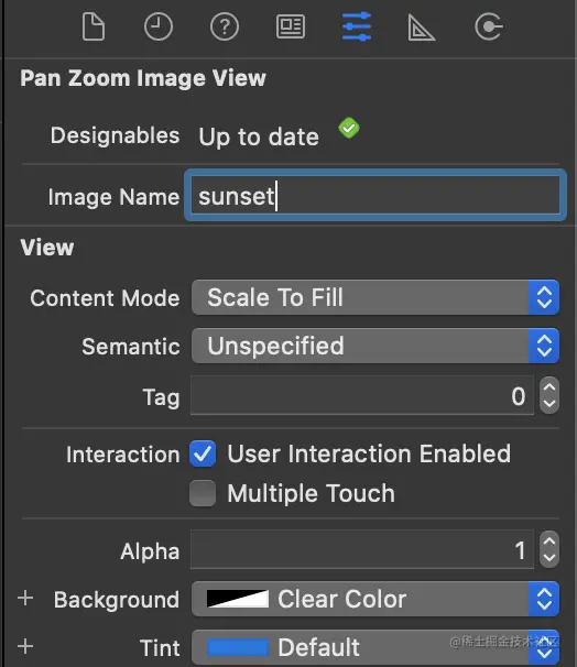 很好!我们有了一个UIIm我们已经有了一个嵌套在UIScrollView中的UIImageView,一切都应该是可滚动和可平移的。但是我们如何设置我们的图像呢?我们将通过在我们的类中添加imageName字符串,并在字符串改变时更新UIImageView来实现。我们还将把imageName标记为@IBInspectable,这样就可以通过Interface Builder来设置它。