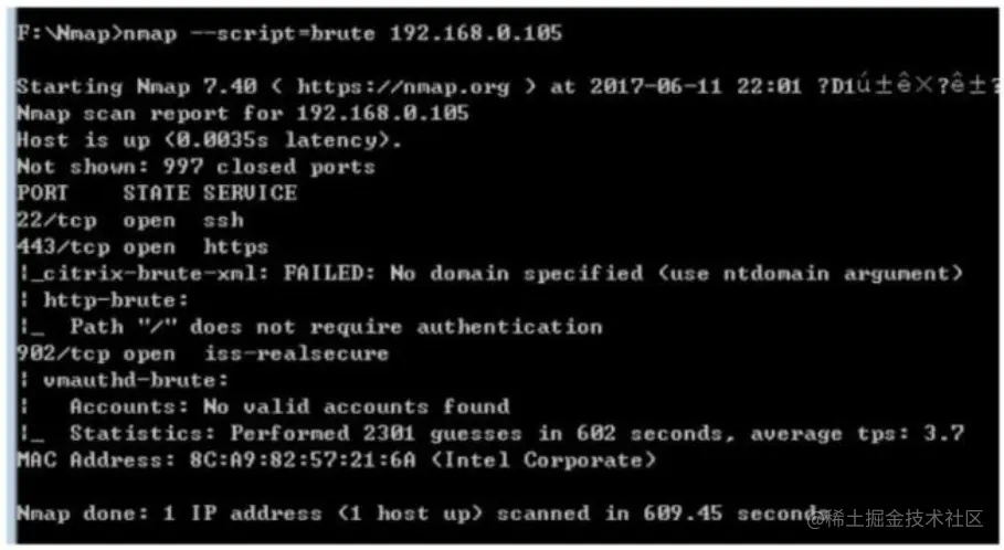 Nmap具有暴力破解的功能,可对数据库、SMB、 SNMP等进行简单密码的