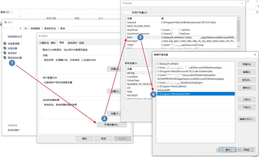 如果你还没装Git的话,这里要先安装 Git,所以配置 Git 的 bin目录到环境变量的 PATH 变量下,这样VS Code连接的时候就能找到它了。