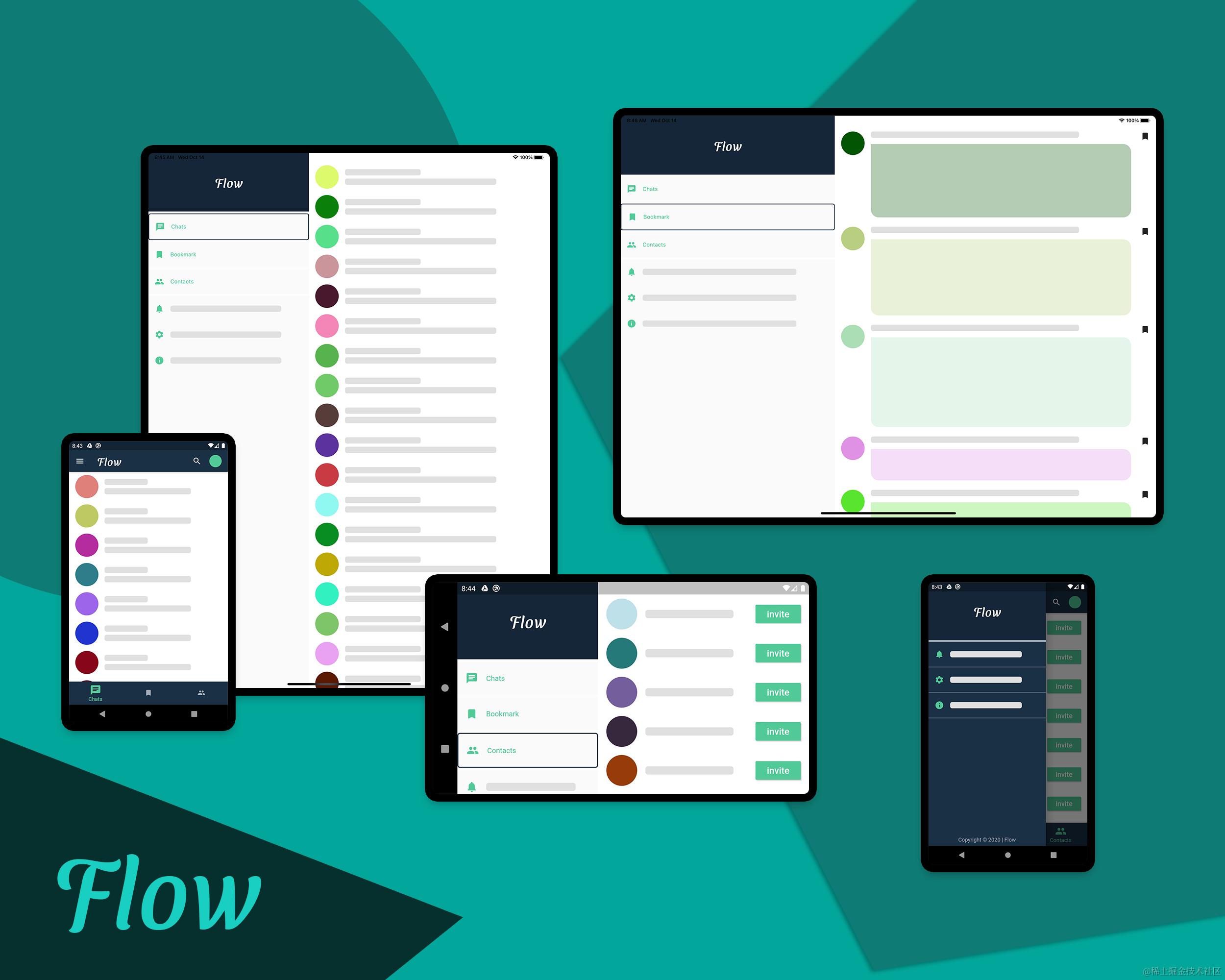 响应式布局:在不同大小的屏幕上使用不同的布局。 我们将建立一个名叫Flow的聊天应用程序。