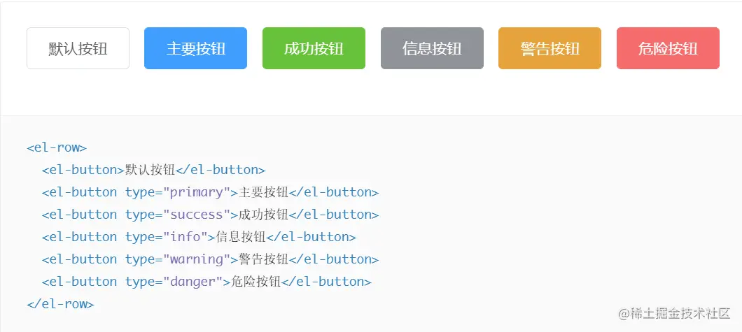 Element UI 中的 button 组件就是一个很好的例子。它通过 type 属性区分不同的业务场景,从而表现为不同的颜色,而不是直接暴露一个 class 供调用方覆盖。这一方面明确了业务场景,符合语义化的设计,另一方面也提供了色彩的规范,防止调用方滥用造成的视觉混乱。