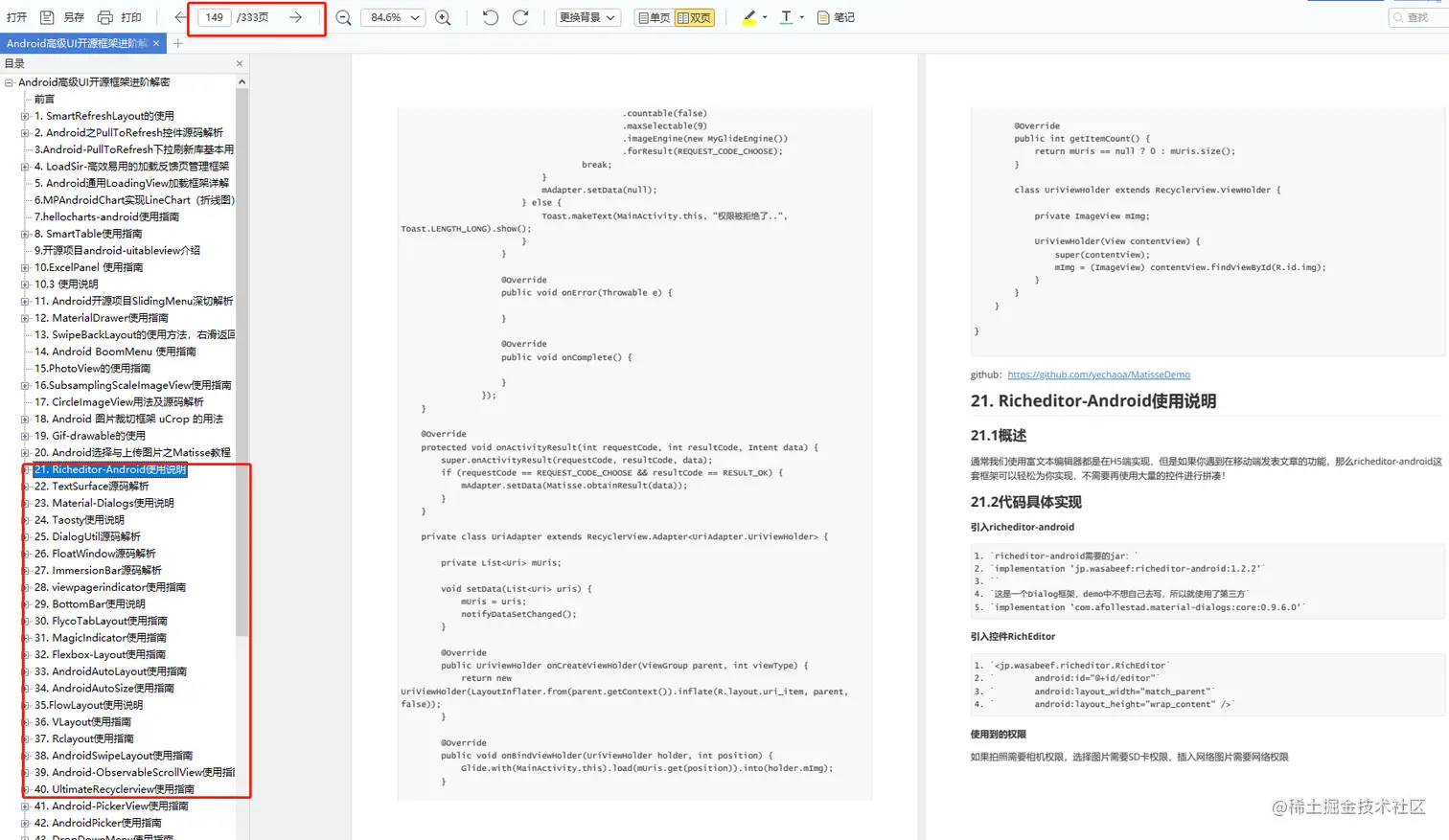 为了解决这个问题,GitHub上一位大佬开源了一份学习手册——《Android UI框架进阶解密》,总结了 Android 项目中值得推荐的UI优秀开源项目,将收集到的开源项目分类汇总到表格中,并对开源项目一一进行源码级解析。