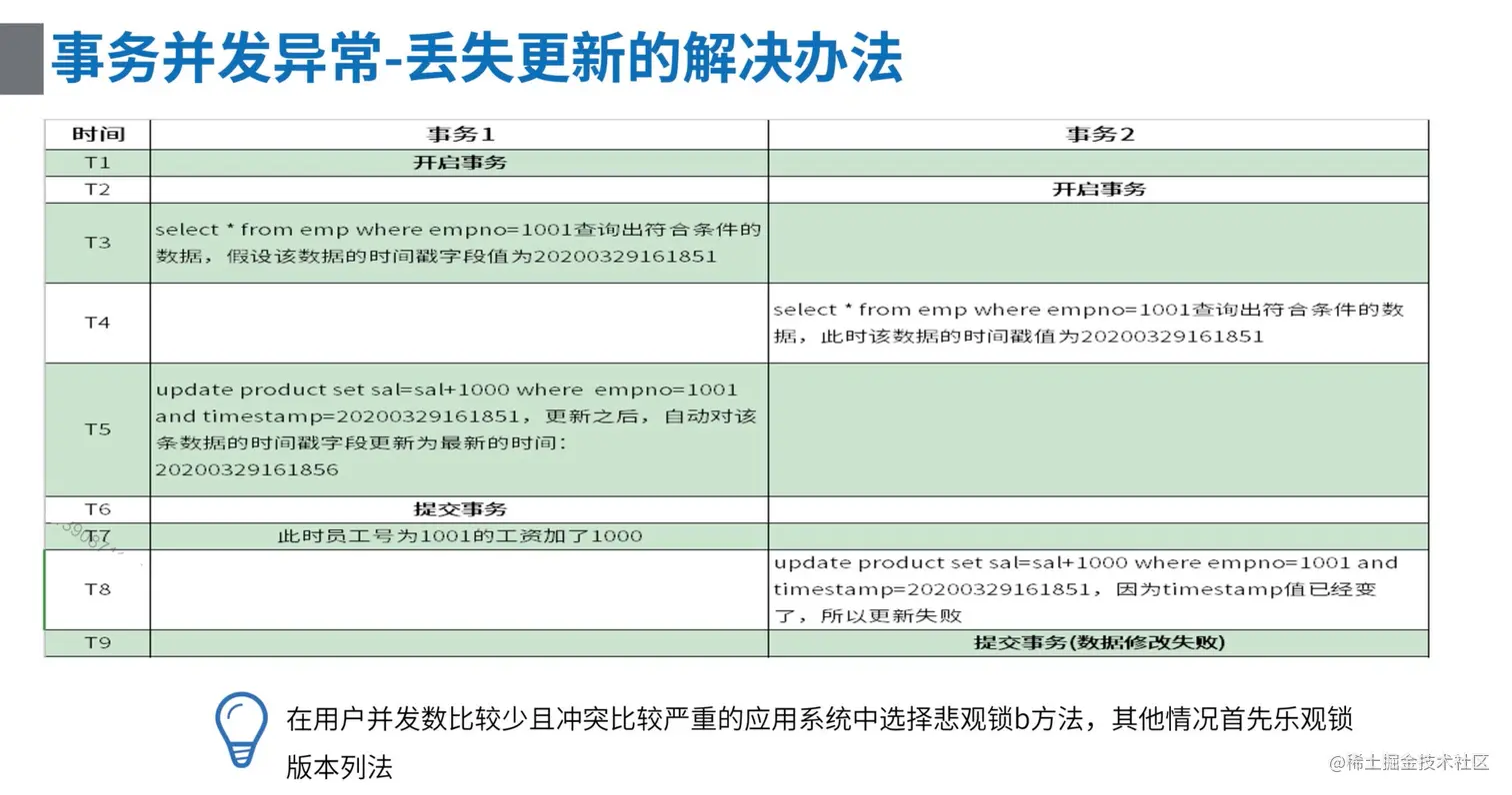在修改数据时通过检查timestamp是否改变判断出当前更新基于的查询是否已经是过时的版本。