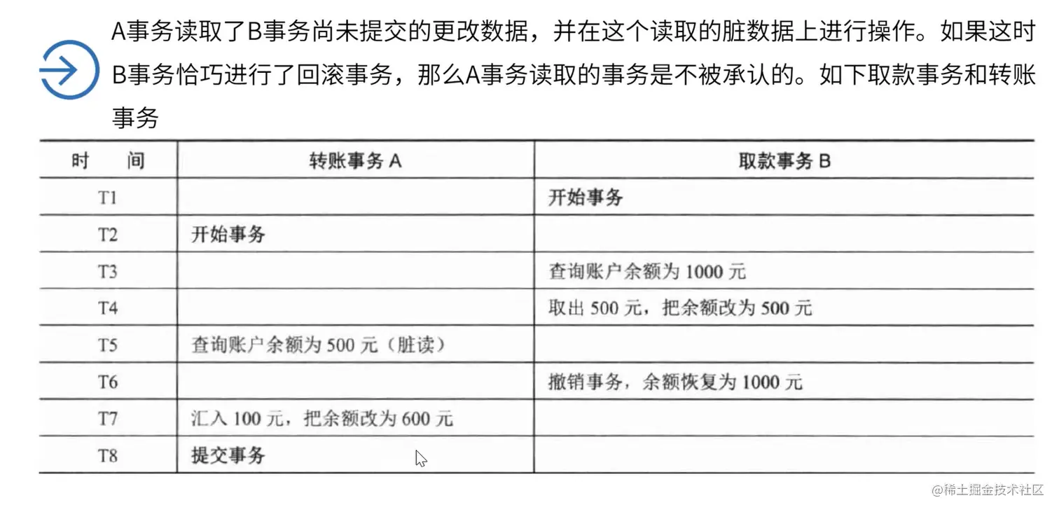 脏读 Dirty Read :是指一个事务读取了另一个事务未提交的数据