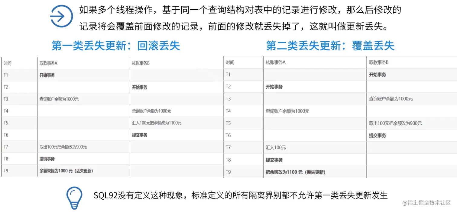 丢失更新 Lost Update :是指事务覆盖了其他事务对数据的已提交修改,导致其他事务的修改好像丢失了一样。