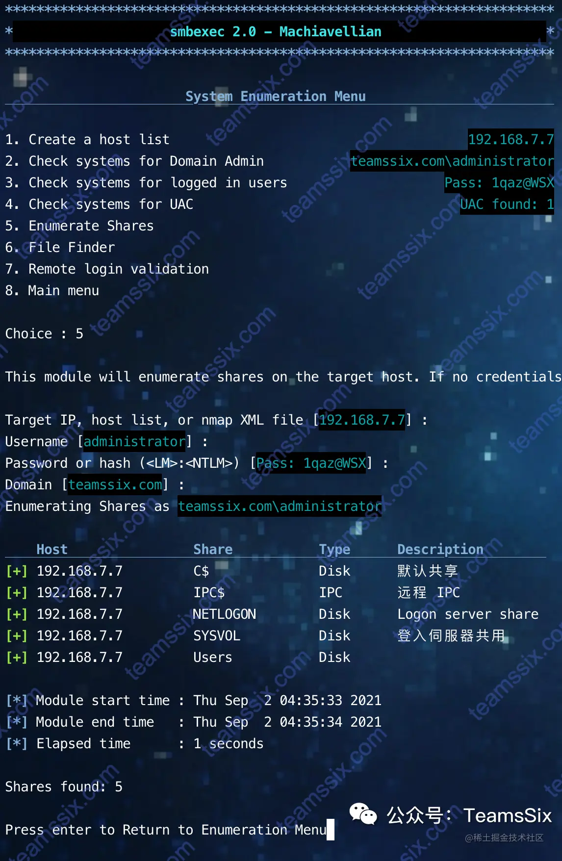 5. Enumerate Shares // 获取目标系统中的网络共享目录