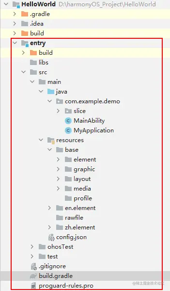 如下展示一个HelloWord基础鸿蒙应用程序结构: