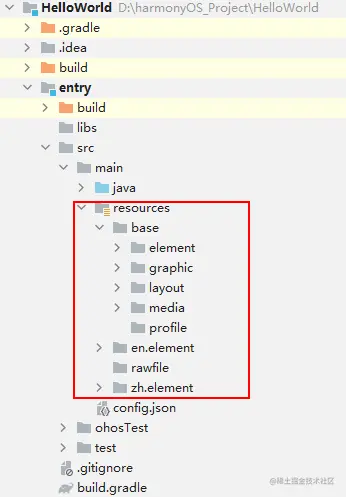 应用的资源文件(图片、音频等)存放于resources目录下,便于开发者使用和维护,后续会详细介绍。
