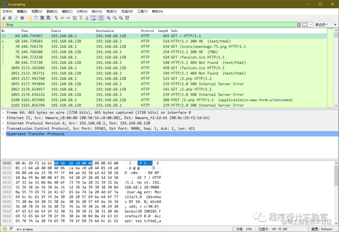 过滤http协议,看到都是192.168.68.128这个IP的请求
