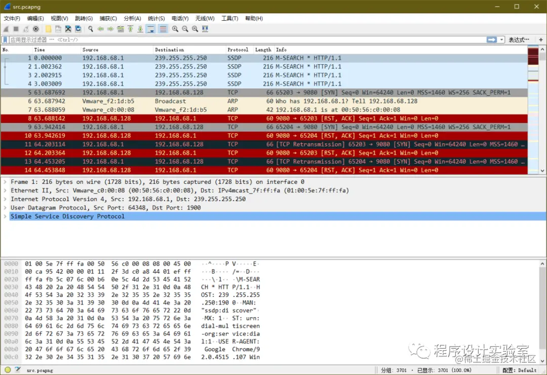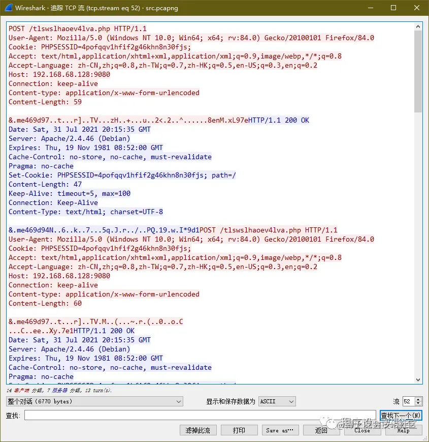 追踪一下TCP流,Host: 192.168.68.128:9080,端口9080