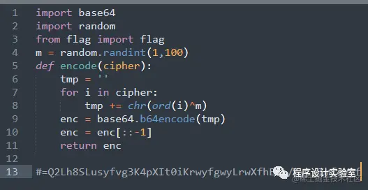 看起来这是一段加密代码,第13行的注释是加密后的密文。