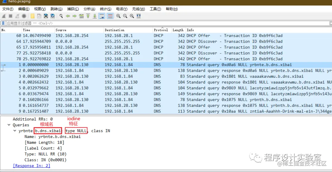 wireshark抓包分析什么的这块我不太熟(大学计算机网络没认真学),但参考文章里的分析,找到一个现成的脚本,可以解密iodine流量(解析DNS流量中传递的明文请求和响应)