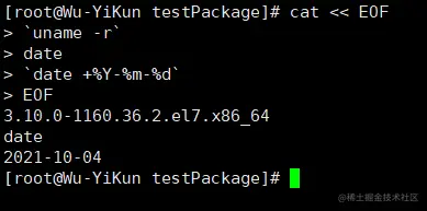 [root@localhost /]# cd /wu-yikun;mkdir /wu-yikun/tmp/;cd /wu-yikun/tmp/;touch /wu-yikun/tmp/file.txt;ll