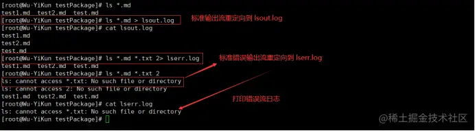 ⭐由于 stdout 与 stderr 都是从屏幕输出,因此按以下方式区分这两类输出流: