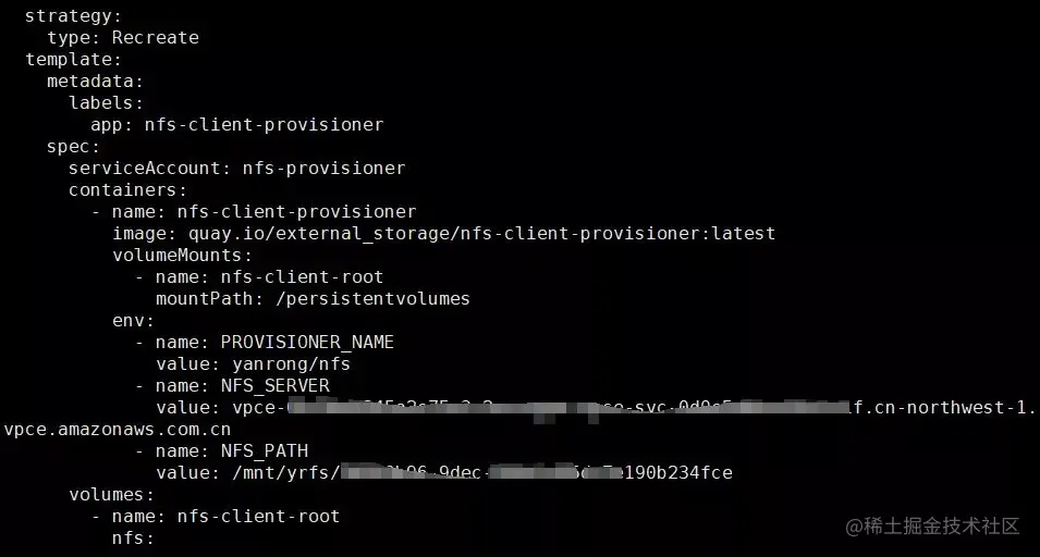 焱融 SaaS 平台提供了 NFS 挂载方式,但如何应用到 Kubernetes 环境,需要思考一下。将 NFS 目录挂载到宿主上,然后利用HostPath来进行存储卷的分配,不够灵活。我们都知道 Kubernetes 内存在 PVC 的概念,如果能用 PVC 来自动通过 NFS 创建 PV 的方式,就会灵活很多。这里我们直接采用官方的 nfs-client-provisioner 来满足上述需求。