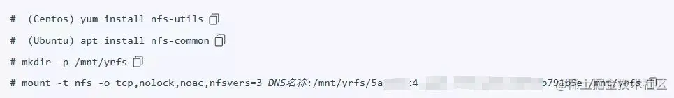 我们需要记录 DNS 名称以及随后的 /mnt/yrfs/5a-xxx-xxxx-xxxx791b5e 的信息,填写到下述文件的对应的标记位置。