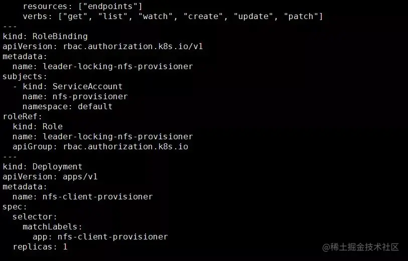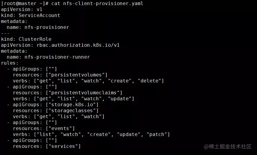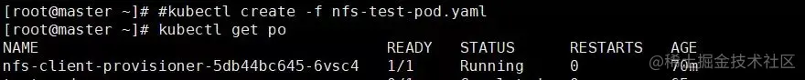 在创建对应的文件后,我们看到 nfs-client-provisioner 创建成功。