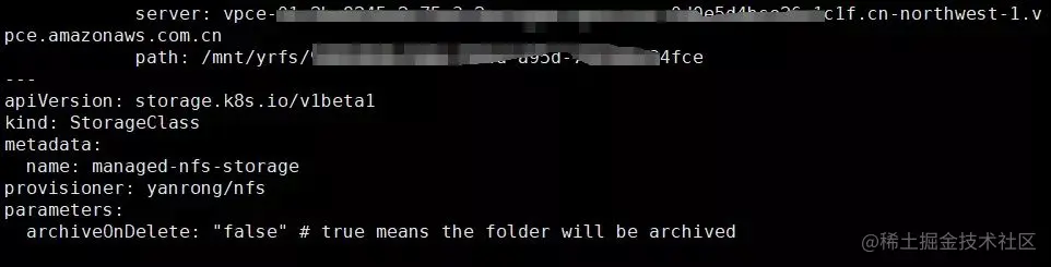 在上面的步骤中,我们创建了 StorageClass,例如这个 StorageClass,我们就可以用通过 PVC 来自动的创建出 PV。