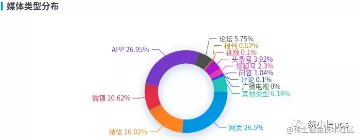 媒体类型方面,10月25日~31日,信创相关舆情主要集中在新闻APP和网站平台,分别占26.95%和26.5%;其次是微信平台,占比16.02%;论坛、微博平台各占5.75%和10.62%;报刊、视频、头条号、搜狐号、问答等平台累计占14.16%。