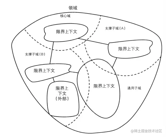 - 限界上下文(Bounded Context) :即定义上下文的边界,可以类比为微服务中服务职责划分的边界。领域存在于边界之内。对于同一个概念,不同上下文会有不同的理解,比如商品,在销售阶段叫商品,在运输阶段就叫货品。