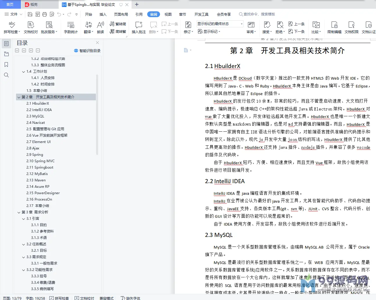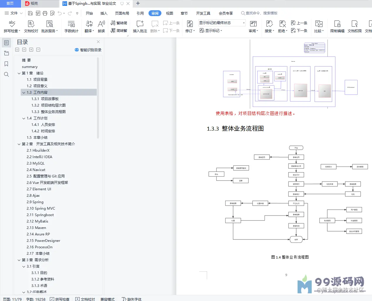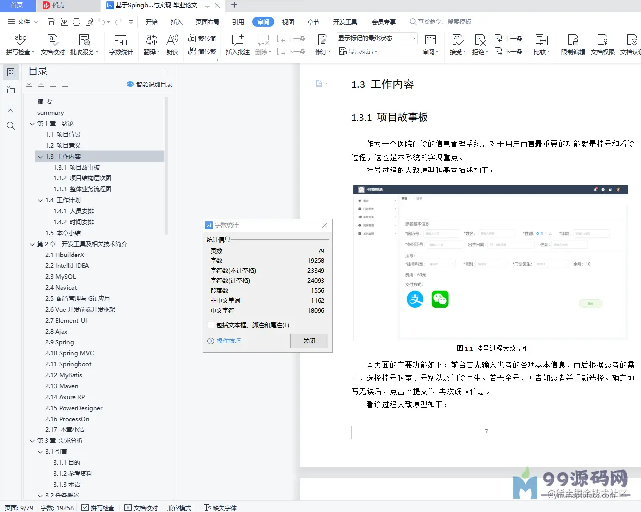 摘 要医院门诊信息管理系统是依据医院的门诊局部以及门诊局部配套的前台、医技、药房等局部的实践状况停止开发编写的一套全方位的管理系统。它的主要目的是便当医院关于门诊局部以及其配套的一些子部份停止集中管理,便当医生的看诊过程和患者的就诊过程,进步医生的工作效率以及患者的称心度。本系统的前端主要运用了Vue框架、Element UI和AJAX技术。Vue采用自底向上增量开发的设计。Vue 的中心库只关凝视图层,并且十分容易学习,也十分容易与其它库或已有项目整合。Element UI则具有分歧性、优化反应、高效率和可控的优点。项目后端主要运用了Spring等一系列框架和MyBatis以及Maven。这一套技术易于学习、操作和管理。数据库方面则是运用了MySQL数据库以及Navicat数据库管理工具,轻量,易于管理。本系统根本完成了项目需求中提出的各项内容,主要完成了前台局部、门诊医生局部、医技医生局部、药房局部和系统管理局部五个子系统。其中前台局部包含了现场挂号、退号、费用查询、收费退费四个子模块;门诊医生局部包含了病历首页、检验申请、门诊确诊、处置申请、药物处方、费用查询六个子模块;医技医生局部包含了患者检验、患者处置、医技管理三个子模块;药房管理局部包含出药和药品管理两个子模块;系统管理局部包含科室管理、医生排班管理、用户管理三个子模块。本文将从所应用的技术、详细的完成、完成的功用、在系统中的作用等方面,对我们完成的医院门诊管理系统停止细致的描绘。关键词HIS医院信息系统;前后端别离;VUE;SpingbootsummaryThe outpatient information management system of the hospital is an all-round management system developed and written according to the actual situation of the outpatient part of the hospital and the supporting reception desk, medical technology, pharmacy and other parts of the outpatient part.Its main purpose is to facilitate the hospital to conduct centralized management of the outpatient department and its supporting subsidiaries, so as to facilitate the consultation process of doctors and the treatment process of patients, and improve the work efficiency of doctors and patient satisfaction.The front end of this system mainly uses the Vue framework, Element UI, and AJAX technologies.The Vue uses a bottom-up incremental development design.Vue's core library focuses only on the view layer and is very easy to learn and easily integrate with other libraries or existing projects.Element UI has the advantages of consistency, optimized feedback, high efficiency, and control.The backend of the project mainly uses a series of frameworks like Spring and MyBatis as well as Maven.This set of technologies is easy to learn, operate, and manage.In the database side, MySQL database and Navicat database management tools are lightweight and easy to manage.The system basically realizes the contents proposed in the project needs, mainly realizing five sub-systems: front desk part, outpatient doctor part, medical technology doctor part, pharmacy part and system management part.The front desk part includes four sub-modules: field registration, withdrawal, fee inquiry and fee refund; outpatient doctor part includes home page, inspection application, outpatient diagnosis, treatment application, drug prescription, fee inquiry; medical doctor part includes patient inspection, patient disposal, medical technology management; pharmacy management part includes two submodules of drug delivery and drug management; and system management part includes three submodules: department management, physician scheduling management and user management.This paper will provide a detailed description of the hospital outpatient management system we implement in terms of the applied technology, specific implementation, completed functions, role in the system, etc.Keywords HIS hospital information system; front and rear separation; VUE;Spingboot目录摘 要 Isummary 1第1章 绪论 51.1 项目背景 51.2 项目意义 61.3 工作内容 61.3.1 项目故事板 61.3.2 项目构造层次图 91.3.3 整体业务流程图 91.4 工作方案 101.4.1 人员布置 101.4.2 时间布置 101.5 本章小结 10第2章 开发工具及相关技术简介 112.1 HbuilderX 112.2 IntelliJ IDEA 112.3 MySQL 112.4 Navicat 122.5 配置管理与Git应用 122.6 Vue开发前端开发框架 122.7 Element UI 132.8 Ajax 132.9 Spring 132.10 Spring MVC 132.11 Springboot 132.12 MyBatis 142.13 Maven 142.14 Axure RP 142.15 PowerDesigner 152.16 ProcessOn 152.17 本章小结 15第3章 需求剖析 163.1引言 163.1.1目的 163.1.2参考材料 163.1.3术语 163.2任务概述 163.2.1目的 163.3需求规则 163.3.1普通性需求 163.3.2功用性需求 173.3.3挂号 193.3.4缴费/退费 213.3.5病例填写 233.3.6 检验申请 253.3.7门诊确诊 263.3.8处置申请 283.3.9开立处方 303.3.10处方管理 313.3.11患者检验 323.3.12患者处置 343.3.13医技管理 363.3.14药房开药 373.3.15药房管理 393.3.16医生排班管理 403.3.17科室管理 413.3.18用户管理 433.4系统平安性的请求 453.4.1数据存储平安 453.4.2访问控制平安 453.4.3网络传输平安 453.4.4应用系统审计 453.4.5系统约束 453.5运转环境规则 453.5.1运转环境 453.5.2接口 463.6遗留问题 463.7项目非技术需求 463.8本章小结 46第4章 系统设计 474.1 界面原型及接口设计 474.1.1 挂号局部 474.1.2 退号局部 484.1.3 患者费用查询局部 494.1.4 缴费/退费局部 504.1.5 病历首页局部 514.1.6 检验申请局部 524.1.7 处置申请局部 534.1.8 门诊确诊局部 544.1.9 成药处方局部 554.1.10 草药处方局部 564.1.11门诊费用查询局部 574.1.12患者检验局部 584.1.13患者处置局部 594.1.14医技管理局部 604.1.15开药局部 604.1