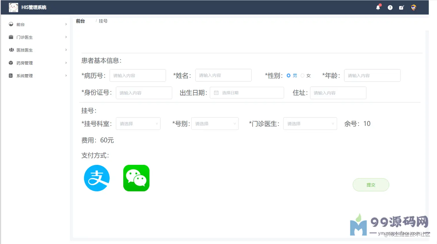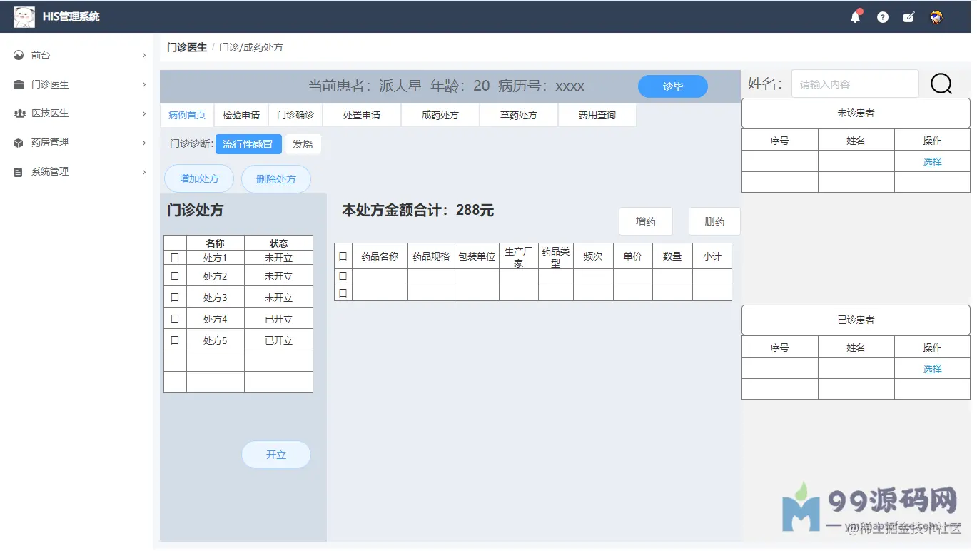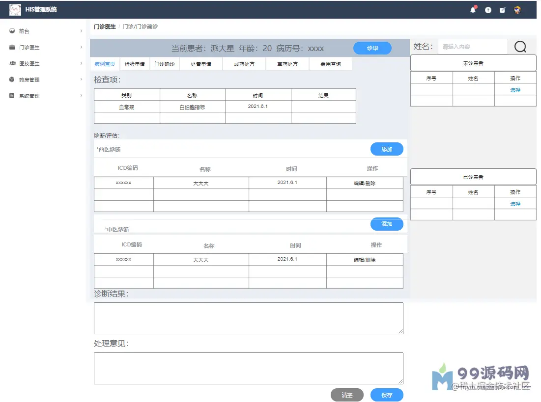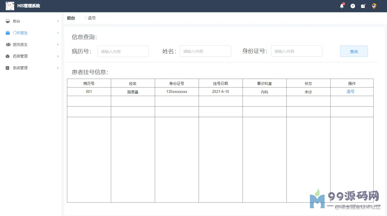 基于Spingboot的HIS医院门诊信息系统设计与实现 毕业论文+项目源码及数据库文件、