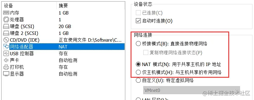 ⭐此外,在一台主机上只允许有一个 NAT 模式的虚拟网络。因此,同一台主机上的多个采用 NAT 模式网络连接的虚拟机也是可以相互访问的。