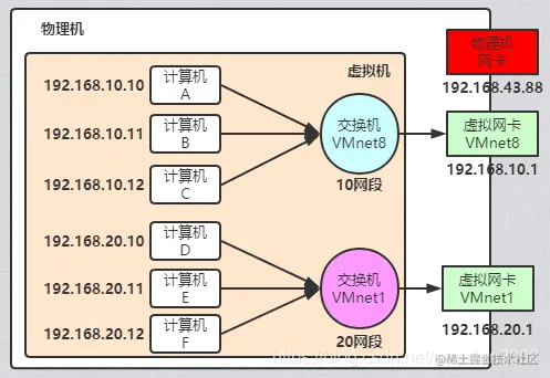 ⭐我们在虚拟机上配置的网段,网卡会默认使用该网段的第一个 IP 地址作为此网卡的 IP 地址。