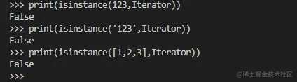 python中可迭代的对象主要有一类是集合数据类型,如list、tuple、dict、set、str等;一类是generator,包括了生成器和带yield的generator function。而生成器不但可以作用于for循环,还可以被next()函数不断调用并返回下一个值,直到最后抛出StopIteration错误表示无法继续返回下一个值了。这类可以被next()函数调用并不断返回下一个值的对象称为迭代器(Iterator)。也可以通过isinstance()判断一个对象是否是迭代器对象。